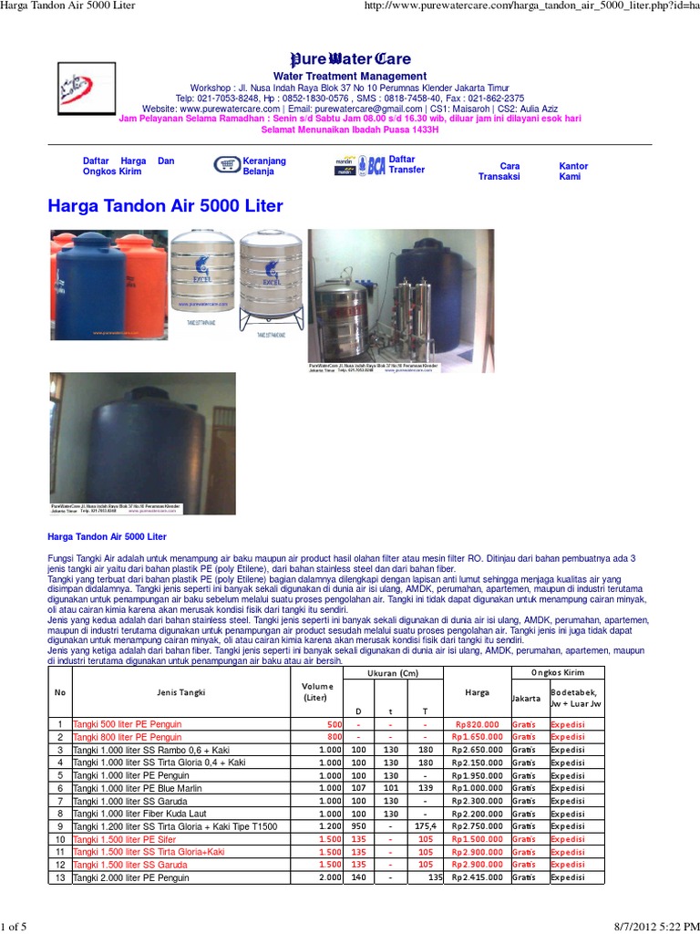 Jual murah lampu uv aquarium murah. Daftar harga tangki air januari 2020 berbagai merk jual toren tandon penguin tb 80 excel terlengkap update terbaru penampungan 5000 liter 5000l plastik tda profil tank. Make social videos in an instant: Wa 081 5658 8345, tandon air 5000 liter semarang, tandon air penguin semarang, harga tandon air 5000 liter semarang beberapa hari yang lalu kami ada memesan tandon air (toren air) bisa juga di bilang tangki air merek penguin 1000 liter, dimana. Beli aneka produk tangki air 5000 liter online terlengkap dengan mudah, cepat & aman di tokopedia. Jika anda mencari ukuran diatas 5000 liter, silakan hubungi kami via wa. Semarang, harga tandon air 5000 liter semarang, tandon air penguin 5000 liter. Kapasitas lainnya yang kami jual 4000 liter, 8000 liter, 10000 liter, 16000. Tandon air kotak adalah pilihan paling tepat untuk anda. Namun, banyak yang mengabaikan pentingnya tandon air karena mempertimbangkan dari segi harganya. Tandon air gudang tandon merk new88 harga pabrik kwalitas sni tebal hdpe gudang tandon tandon ready ukuran tandon siap kirim tandon 2200 l dimater 140 cm tinggi 175 cm harga : 0 ratings0% found this document useful (0 votes). Jual tandon air murah, harga beli terbaik, berbagai pilihan, beli murah langsung dari distributor,supplier, pabrik dan toko di indotrading.com.