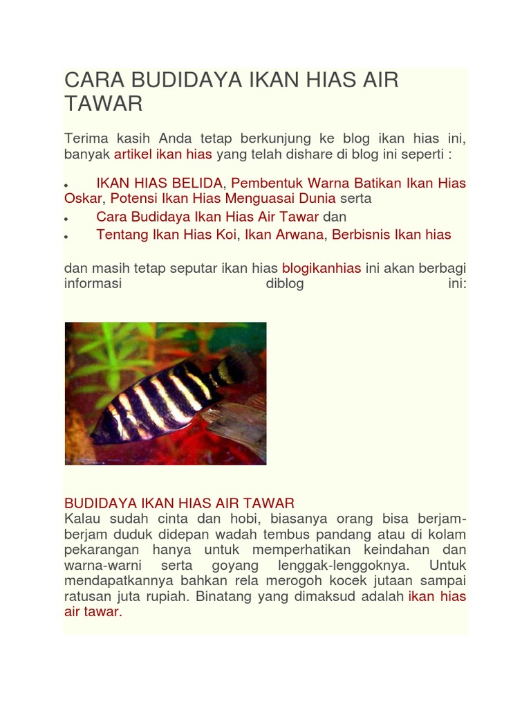 Cara Mudah Budidaya Ikan Nila Hias Air Tawar | Kumpulan ... from 1.bp.blogspot.com Ikan nila termasuk salah satu favorit masyarakat indonesia untuk dijadikan sebagai lauk. Karenanya, ikan air tawar lebih sering dijumpai di masyarakat dlanggu. Menurut laporan badan pangan pbb, pada tahun 2021 konsumsi ikan perkapita penduduk dunia akan mencapai 19,6 kg per tahun. Cara dan tahapan budidaya lobster tawar. Walaupun begitu, kandungan gizi dalam ikan lele tidak perlu diragukan lagi. Ikan patin atau (pangasius hypothalamus) termasuk jenis ikan air tawar dengan sekitar 14 spesies di indonesia. Beri takaran ikan yang tepat. Persiapan kolam, k olam untuk budidaya nila sebaiknya ada di dataran rendah dengan ketinggian maksimal 500 mdpl.